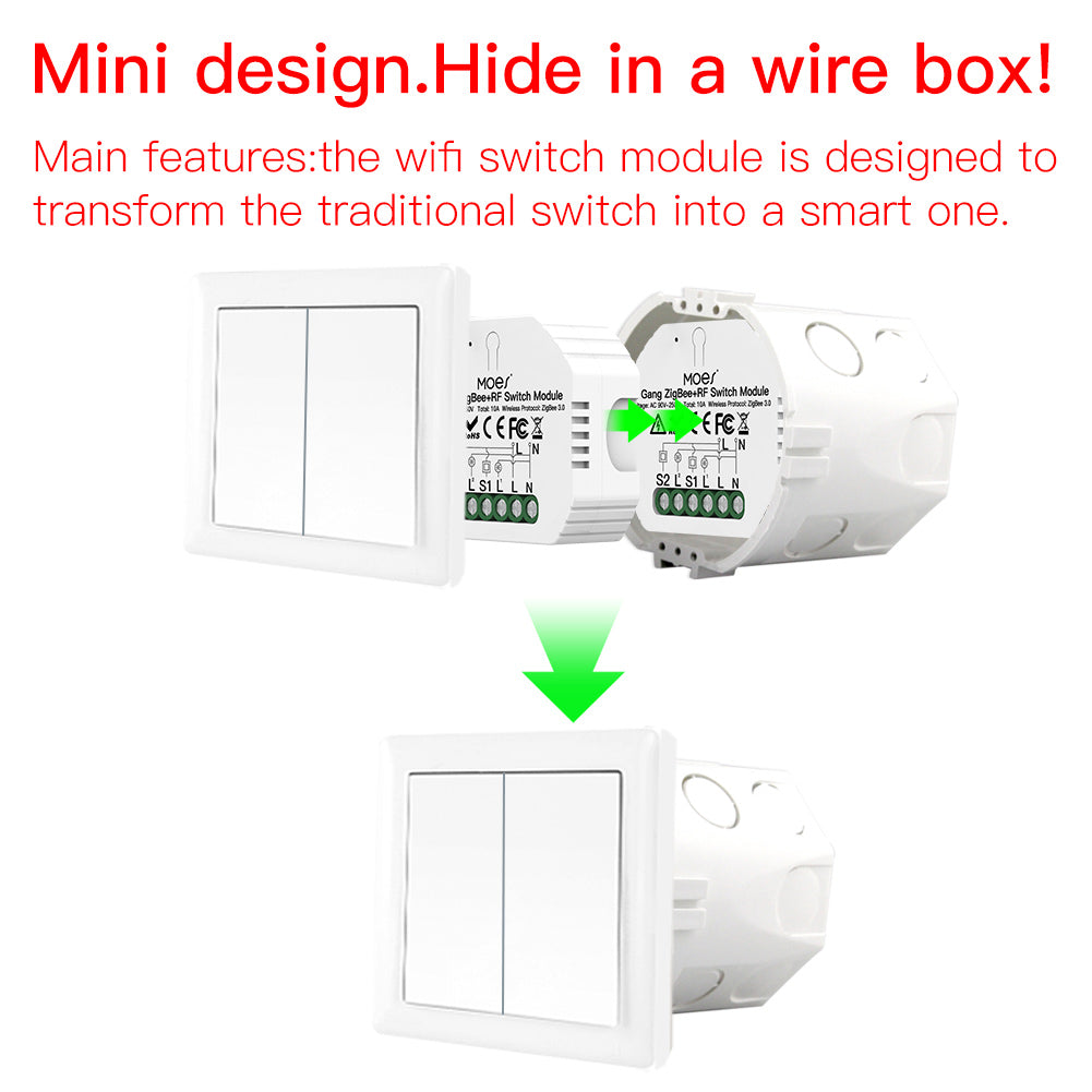 1.This smart Tuya ZigBee 3.0 module is designed with ZigBee 3.0 protocol specially, compatible with Tuya ZigBee hub to realize the whole linkage of your house,a really good substitution for unstable Wi-Fi. ZigBee 3.0 protocol with mini design suits for EU/UK wall switch box ,and easily hide it into your hidden wall switch box of your traditional switch without any influences on your original decoration style to make it smart,giving your devices ultimate power on/off smart makeover and convert most any compatible products to smart ones;traditional switch and this smart module can work independently without interference.