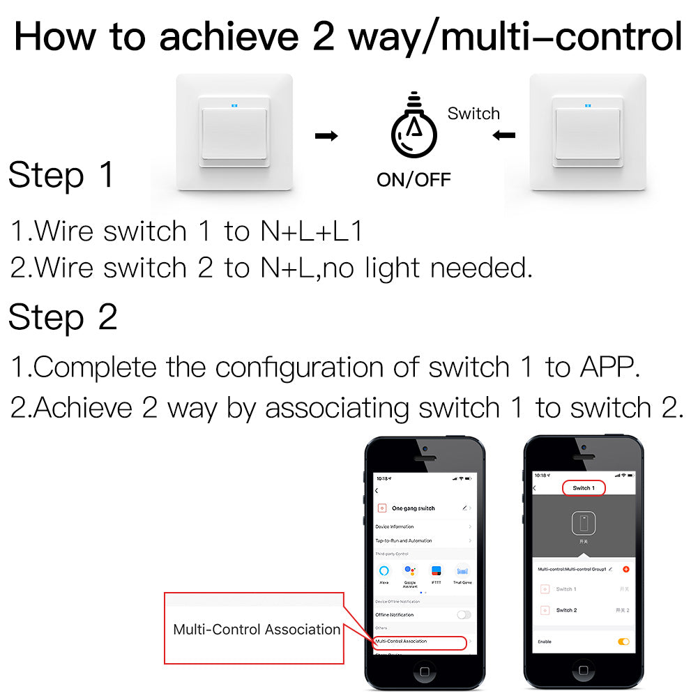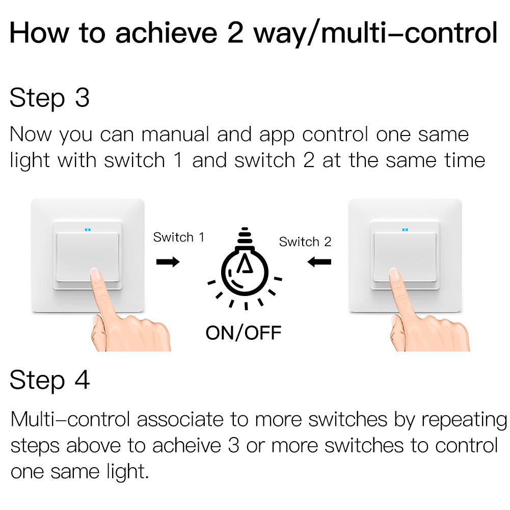 1.2/3-way multi-control association to control 1 light with multiple switches by associating to other smart switches in Tuya Smart Life App;Removable and detachable from wall plate with 1/2/3Gang optional,providing your smart home with much more convenience with only one wall plate.Easily replace the original switch with the one you prefer and no more need to purchase another wall plate.Only one wall plate is enough for the 1/2/3 Gang switch.