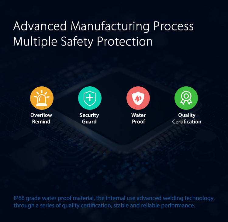 3.Keep your house safe all the time.A really good assistant for your smart house,no more worry about the flood with the sensitive sensing,protecting your home and valuables from annoying leaks and dangerous floods,whether it’s a dripping sink under the bathroom cabinet,a burst pipe in the basement,or a severe weather event. And even track history of sensor activities in App to get much more intelligence and convenience.