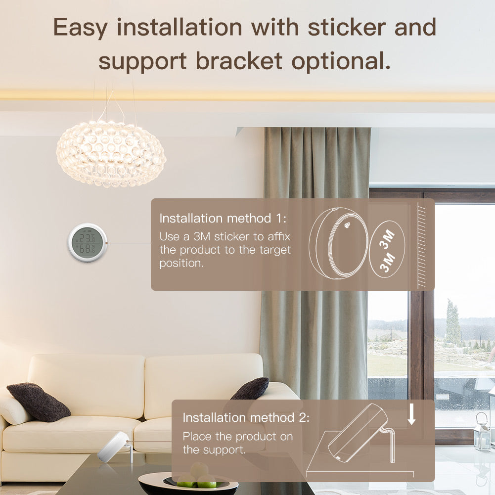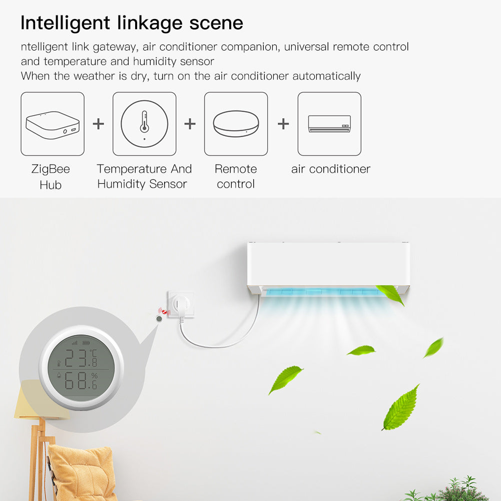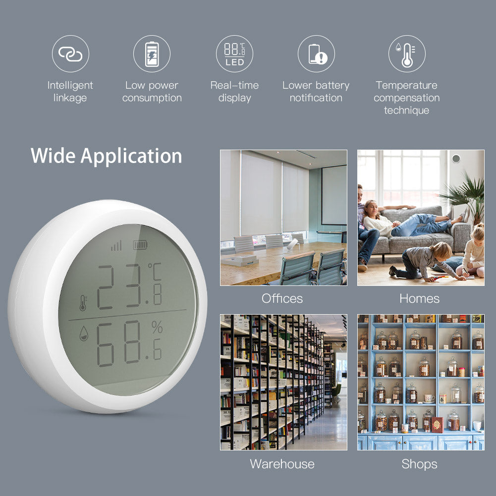 4.New added with temperature compensation technique with smart scene linkage to your air conditioning and humidifier,offering your house with the most comfortable temperature and humidity to enjoy our smart life.LCD screen display even clearly shows its value for all family members.